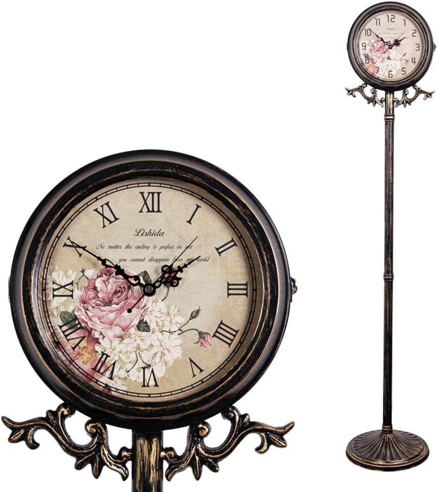Amazon Com Weeday Metal Floor Clock American Retro Country Wrought Iron Round Mute Double Sided Clock Battery Operation Stand Up Clock Decoration Color A Size 14828cm Home Kitchen