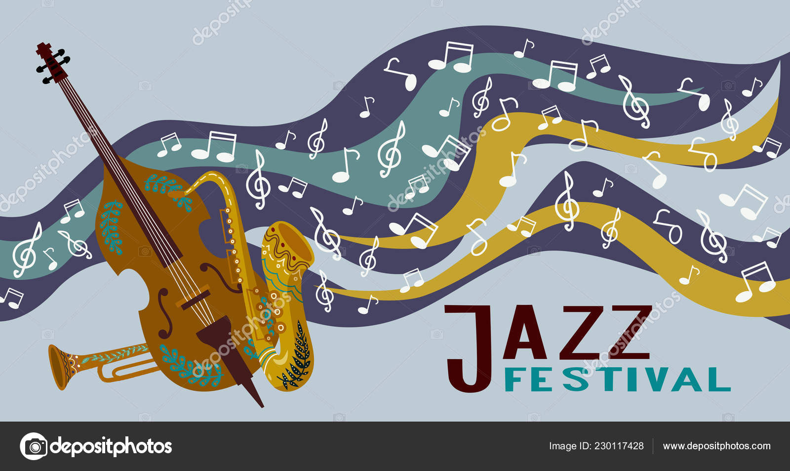 Jazz Band Musical Instruments On Decorative Background With Notes And Lettering Vector Image By C Gev 226 Mail Ru Vector Stock 230117428