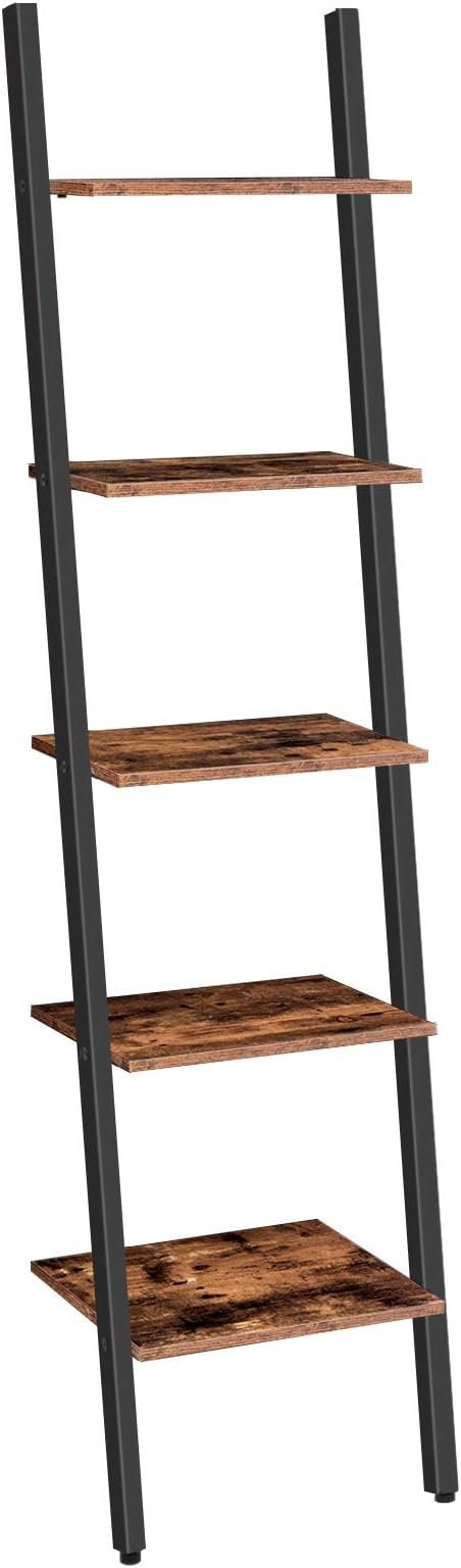 Amazon Com Hoobro Ladder Shelf 5 Tier Narrow Bookshelf Leaning Against Wall Stable Plant Flower Stand Sloping Bookcase Multipurpose Accent Storage Rack For Living Room Kitchen Office Rustic Brown Bf71cj01 Home Kitchen