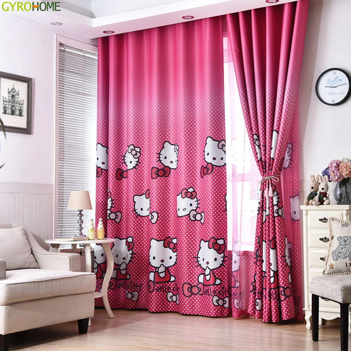 Gyc2371 Cute Cat Baby Pink Curtains For Girl Bedroom Living Room Cartoon Drapes Match Window Voile Curtains Aliexpress