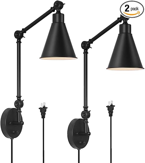 Haitral Swing Arm Wall Sconces 2 Pack Modern Wall Lamps Dimmable Lamp With Mounted Light Fixtures For Home Decor Headboard Bathroom Bedroom Farmhouse Porch Garage Black Bulb Not Included Amazon Com