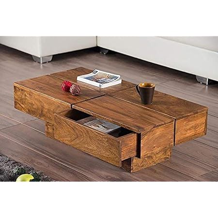 Rjkart Sheesham Wood Coffee Table For Living Room Center Table With 2 Drawers And Storage Natural Honey Finish Amazon In Electronics
