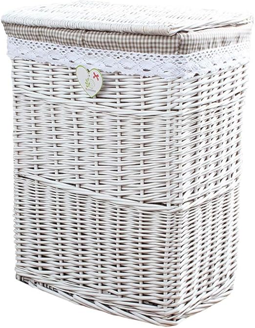 Amazon Com Qxx Laundry Hamper Basket Wicker Clothes Storage Bag Sorter Bin Bucket Household Organizer Lid With Cloth Lining Sturdy Color White Home Kitchen