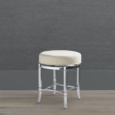 4 Sold by factorydirectsale. This vanity stool adds a hint of glam to your space and creates an inviting spot to apply makeup. The polished stainless steel is plated in a choice of sophisticated finishes while the sleek cushioned seat with swivel function provides top performance.