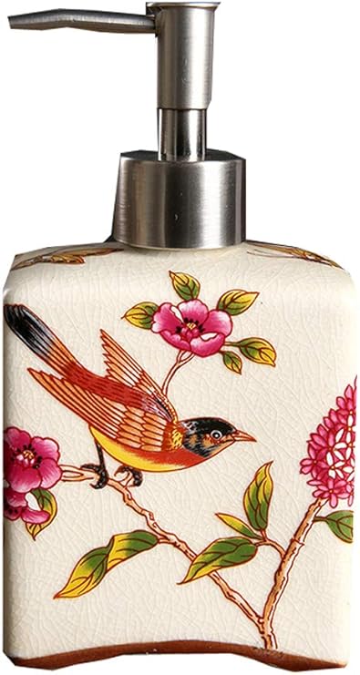 Amazon Com Peacewish Decorative Floral Ceramic Refillable Liquid Hand Soap Ceramic Dispenser Pump Bottle For Kitchen Bathroom Beige Home Kitchen