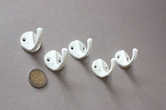 5 Small Wall Hooks White Rustic Mini Bathrobe Bathroom Hook Etsy