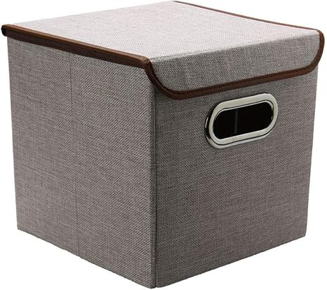 Amazon Com Uxcell Foldable Storage Cubes Bins With Metal Handles Home Decorative Fabric Storage Basket Organizer With Lid For Clothes Closet Laundry Room Gray Kitchen Dining