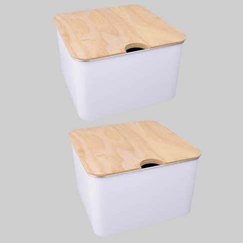 Corrugated Metal Storage Tub With Wood Lid Set Of 2 Storage Tubs Storage Bins With Lids Decorative Storage Bins