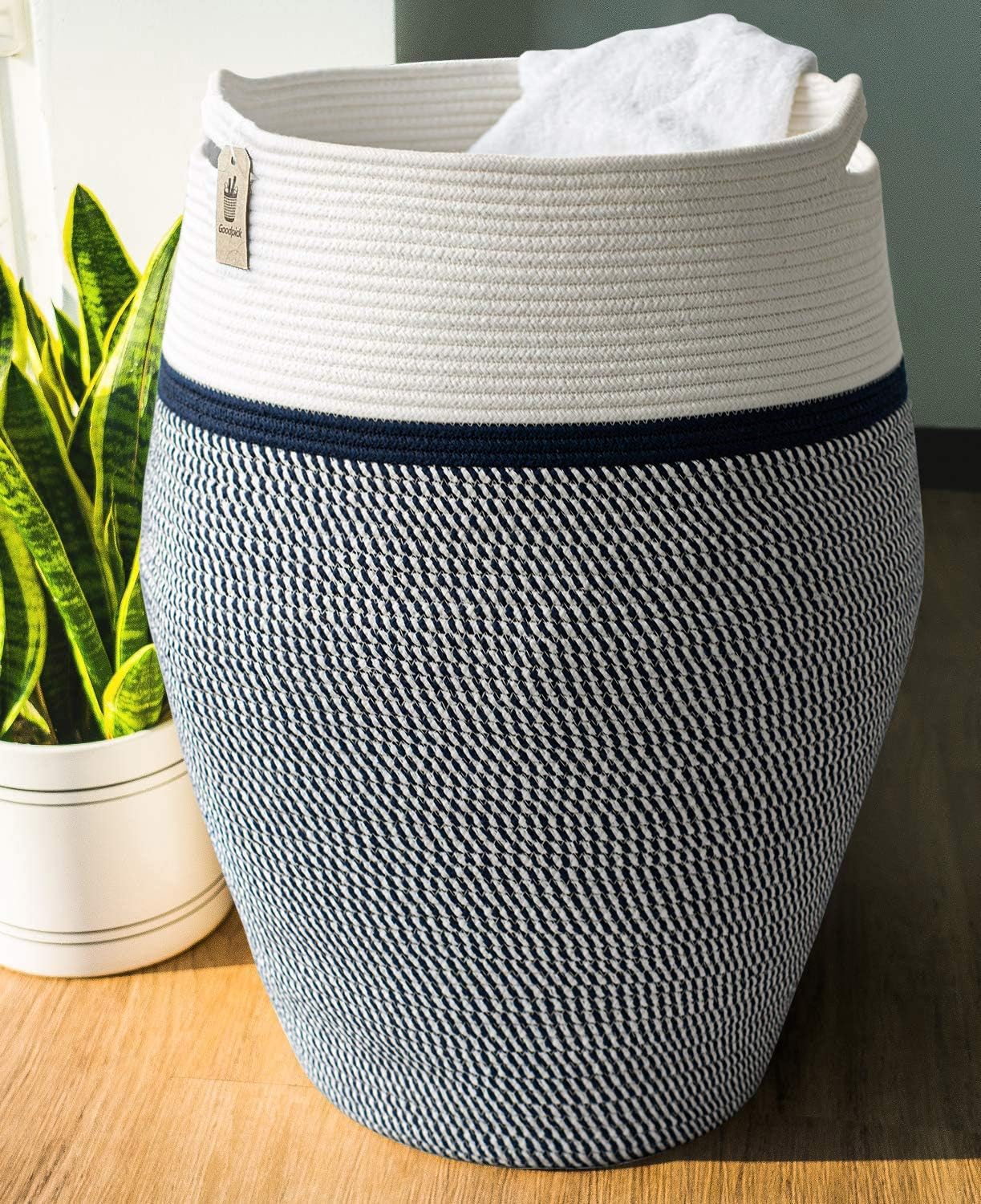Amazon Com Goodpick Laundry Hamper Large Wicker Hamper Dark Blue Woven Basket Neutral Clothes Hamper For Living Room Decorative Modern Curve Storage Bucket 25 6 Height Home Kitchen