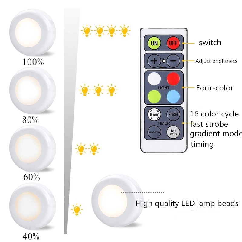 Led Night Lights White Shell 16 Color Lighting Wireless Touch Remote Dimmable Light For Bedroom Cabinet Wardrobe Staircase Corridor Night Lamp Use Battery Power 1w Shopee Indonesia