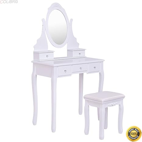Amazon Com Colibrox White Vanity Jewelry Wooden Makeup Dressing Table Set W Stool Mirror 5 Drawers Makeup Vanity Table Modern Makeup Vanity Cheap Makeup Vanity Modern Vanity Table Kitchen Dining