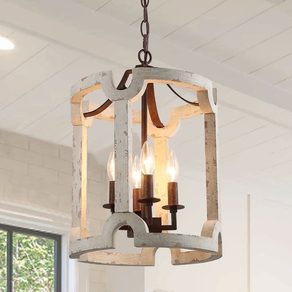 Rustic Wood Farmhouse Chandeliers Pendant Lighting White Cylinder Peacock On Sale Overstock 29187508