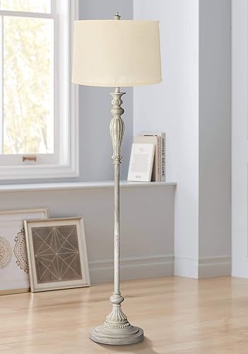Amazon Com Vintage Shabby Chic Floor Lamp Antique White Cream Burlap Drum Shade For Living Room Reading Bedroom Office 360 Lighting Home Improvement