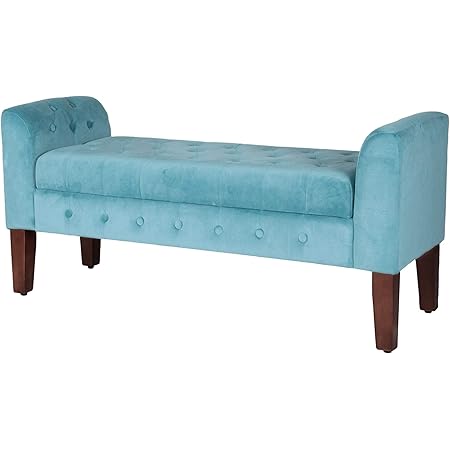 Amazon Com Homepop By Kinfine Fabric Velvet Tufted Storage Bench Settee With Wood Legs Teal Furniture Decor