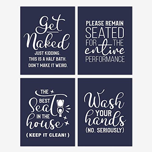 Amazon Com Fun Witty Navy Bathroom Wall Art Decor Set Of 4 8x10 Unframed Comical Dark Blue Prints For Home Bath Room Or Apartment Decoration By Peechy Handmade